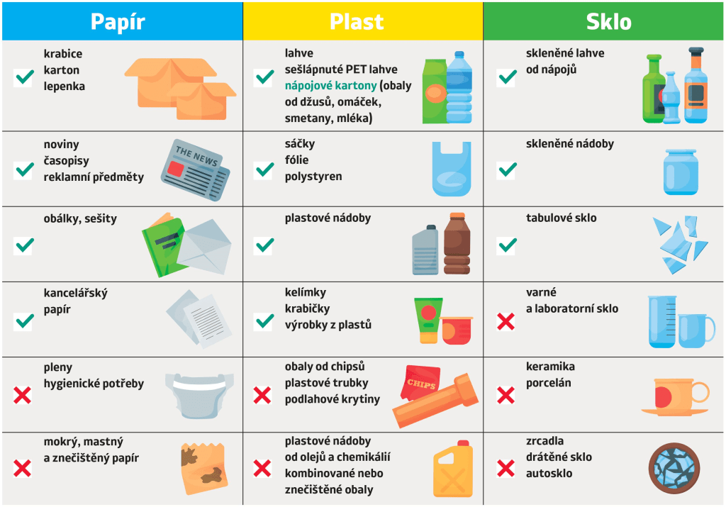 Jak správně třídit znázorňuje tabulka třídění odpadu z domácností (zdroj: AVE.cz)